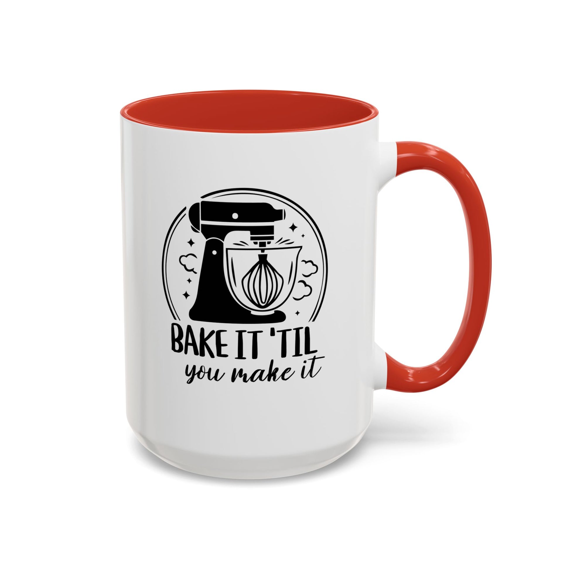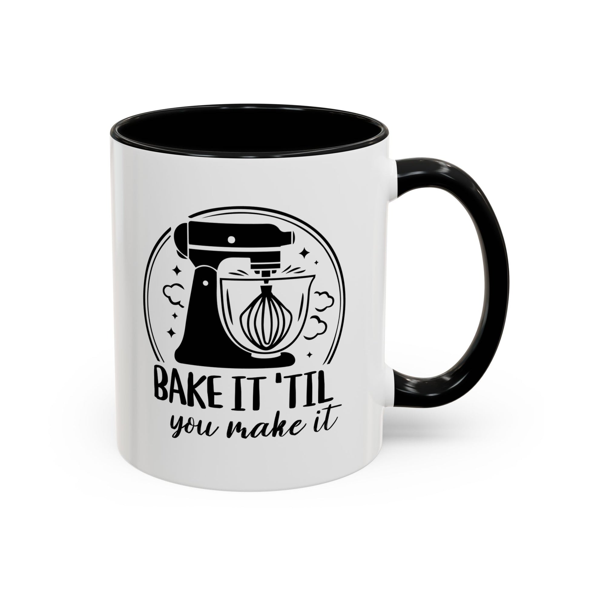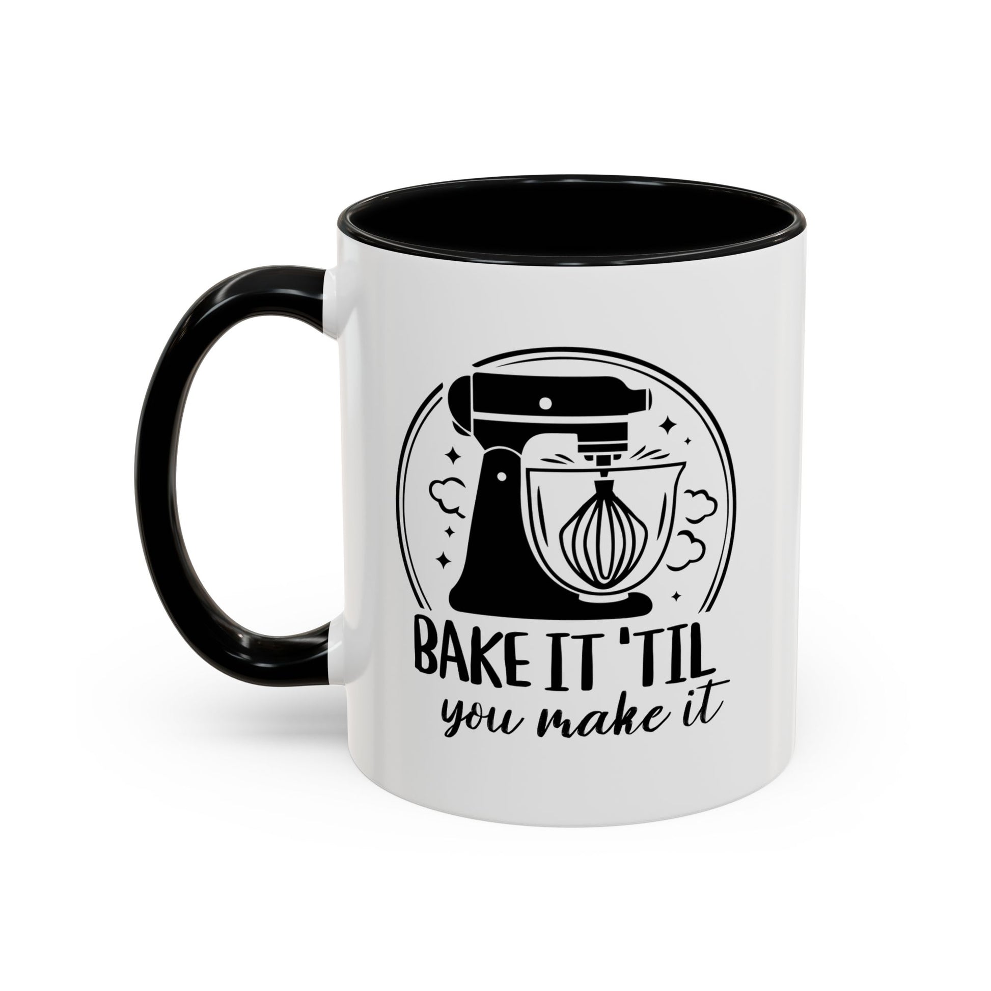 “Bake It 'Til You Make It” Ceramic Mug – Retro Stand Mixer Design (11oz, 15oz)